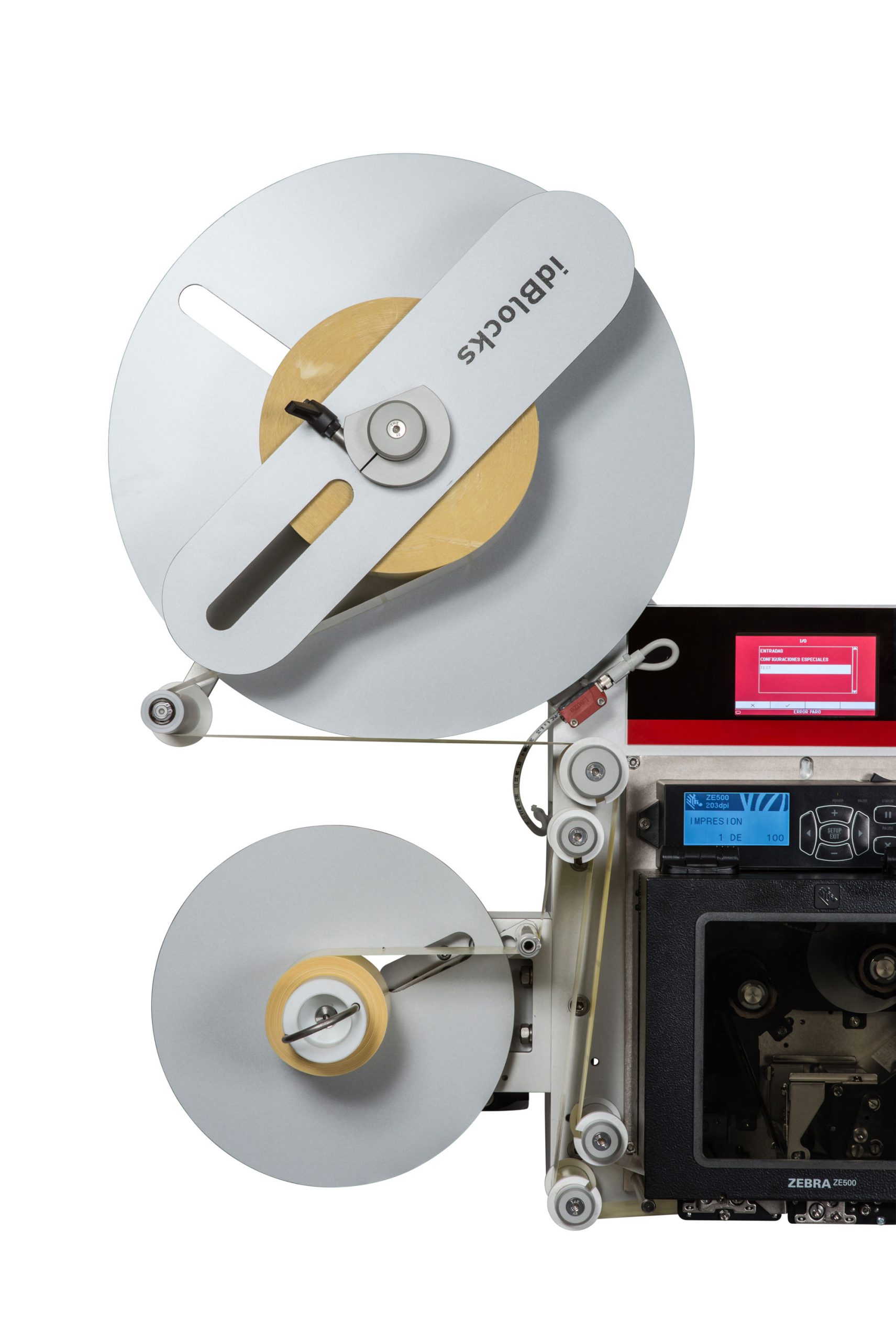 Label applicator system by a lineal pneumatic cylinder that allows the label approach and its application to different lengths surfaces.
